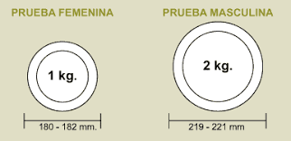 El disco será de madera y tendrá los bordes metálicos y el interior lastrado. Es diferente en las distintas categorías, teniendo así para la masculina 22cm de diámetro y 2kg de peso, y 18cm de diámetro y 1kg de peso para la femenina.